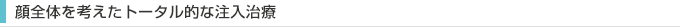 また、近年は特定の”しわ”に対する治療だけではなく、老化のメカニズムに基づいて組織のボリュームアップや靱帯を補強することにより顔面全体を若々しくさせるようなトータル的な注入療法が推奨されてきています。