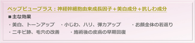 有効成分として、ヒト神経幹細胞から抽出された7種類の成長因子とペプチドに加え、美白成分と抗しわ成分が配合されたプレミアム美容導入剤です。