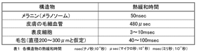 熱緩和時間はターゲットとなる各構造物によって決まっており、表1のように計算されます。