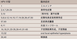 HPV の型と臨床症状の関係(あたらしい皮膚科学23章P432:中山書店)