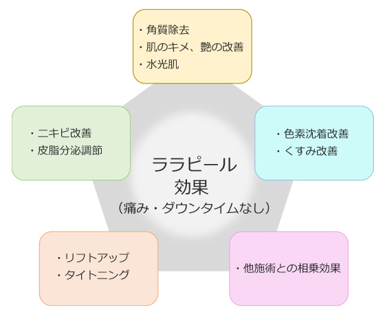 肌の内側から「育てるピーリング」であり、肌を剥く(peeling) のではなく、満たす(filling) というコンセプトから、「ララフィル」とも呼ばれています。