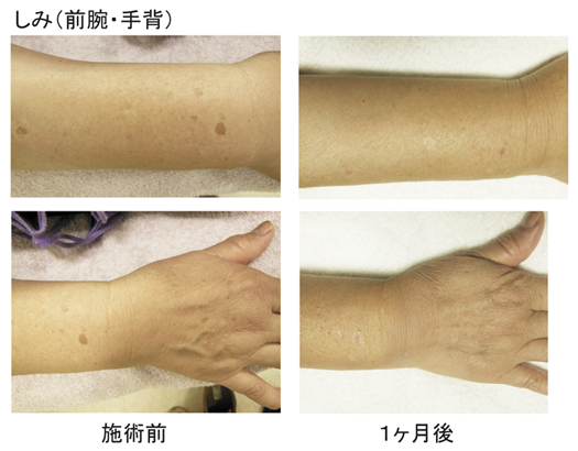 手首や手背などの露光部位にもしみはよくみられますが、Qスイッチレーザーで目立たなくすることができます。