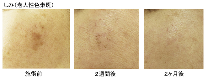 - 通常のしみやそばかすに対しては、1回の施術でも効果的です。経過が良好な場合は追加照射の必要はありません。炎症後色素沈着が出現した場合も時間の経過とともに消退していく場合が多く、経過観察となります。