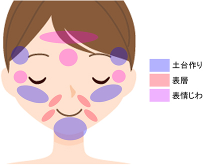 また、ボツリヌス毒素製剤による表情じわの改善も併用します。
