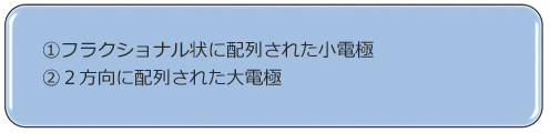 高周波(1MHz)を皮膚表面から内部の組織に与え、細胞内の極性分子を1秒間に100万回ほど振動させ、発生する熱により生じる組織の熱凝固を利用します。